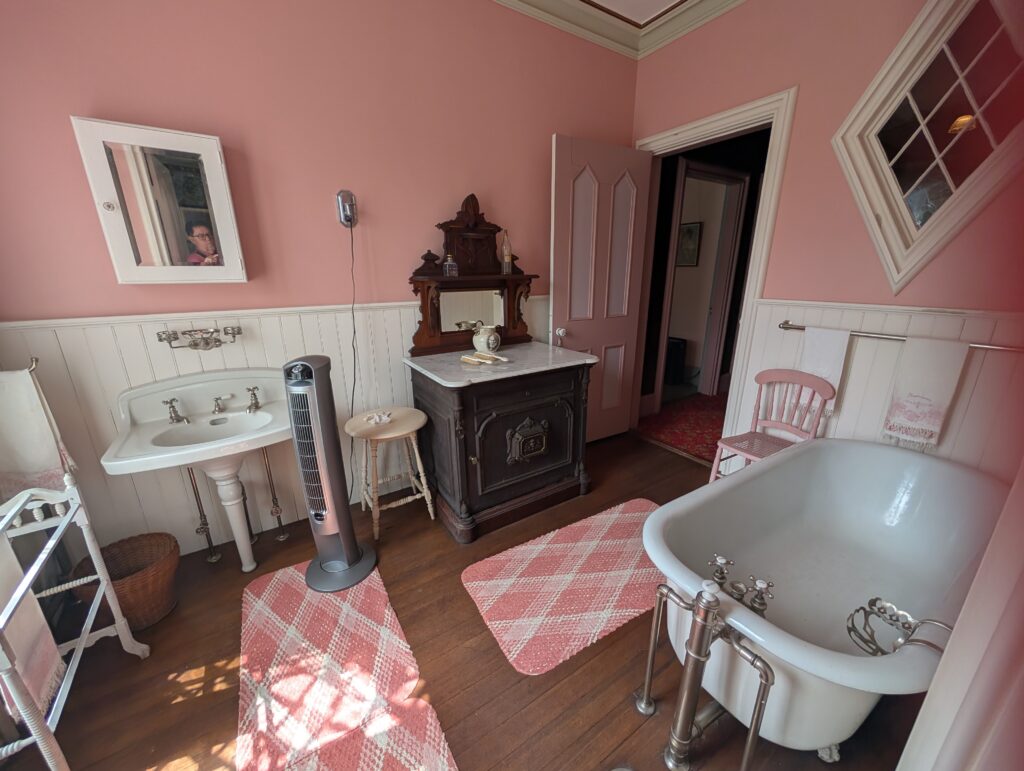 An intersting querk of the house was the safe in the pink bathroom. It seems befoe running water was added to the house, this was Henry’s office. The builder doing the modification did nto want to move the safe so built around it converting the top to a vanity.