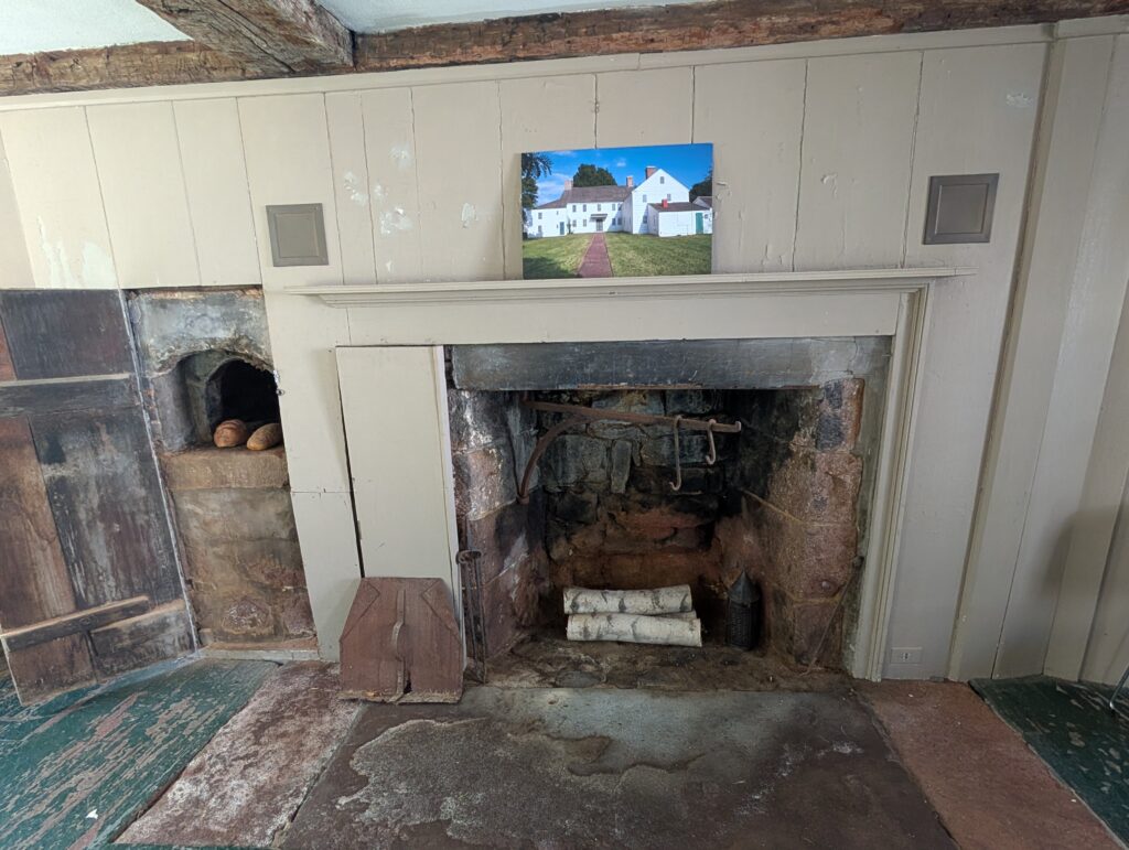 Built originally by Thomas Morris in the late 17th century and represents a typical “stone ender” style house featuring a massive stone chimney that forms one entire end wall of the timber-framed home. There are large beams to create the main support structure. Many of these are exposed showing their size and how they were cut. In a few places you can see the burn scars from when it was burned by the British in 1779 during the raid of New Haven.